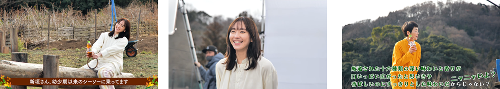 舞台は2021年・2022年にOAされたTVCMと同じく、とある架空の村。そこに暮らす新垣さんと少年が「アサヒ 十六茶」のおいしさの秘密について仲睦まじく語り合っているところに、少年の“おばあちゃん”として、初代CMキャラクターの小林聡美さんが登場します。