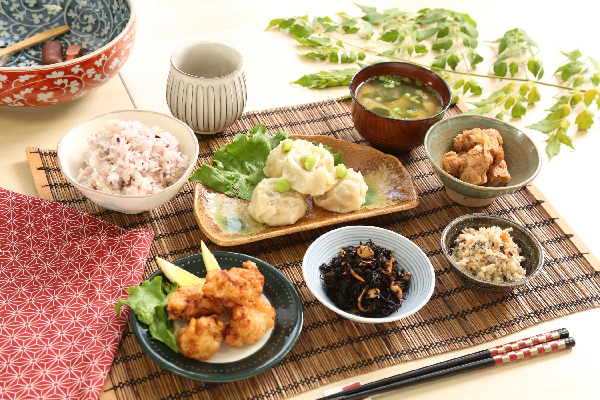 ジャンボ豆腐しゅうまい(6個入り)、塩麹の唐揚げ(180g)