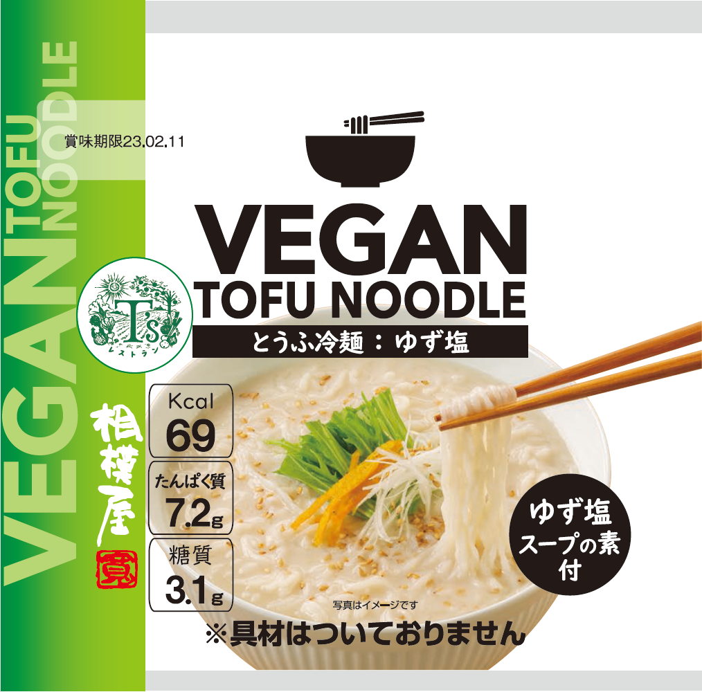 TOKYO-T’s(トウキョウティーズ)株式会社(本社:品川区/代表取締役:下川 祠左都(まさこ))は、 相模屋食料株式会社(本社:群馬県前橋市/代表取締役社長:鳥越淳司 以下、相模屋)とコラボレーションし、相模屋人気の『とうふ麺』シリーズより発売される『VEGAN TOFU NOODLE とうふ冷麺:ゆず塩』を監修致しました。