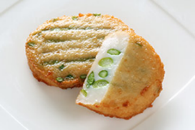 アスパラ:鮮やかな緑が映えるさつま揚げ。見た目だけでなくアスパラの旨みと食感も楽しめます。