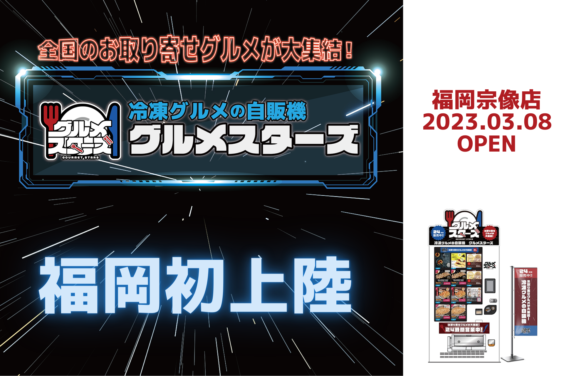 株式会社Cqree(本社:東京都品川区、代表取締役社長:鶴田晃平)がブランド提供する、全国の有名店や絶品グルメを集めた冷凍自販機【グルメスターズ 福岡宗像店】がオープンしました。