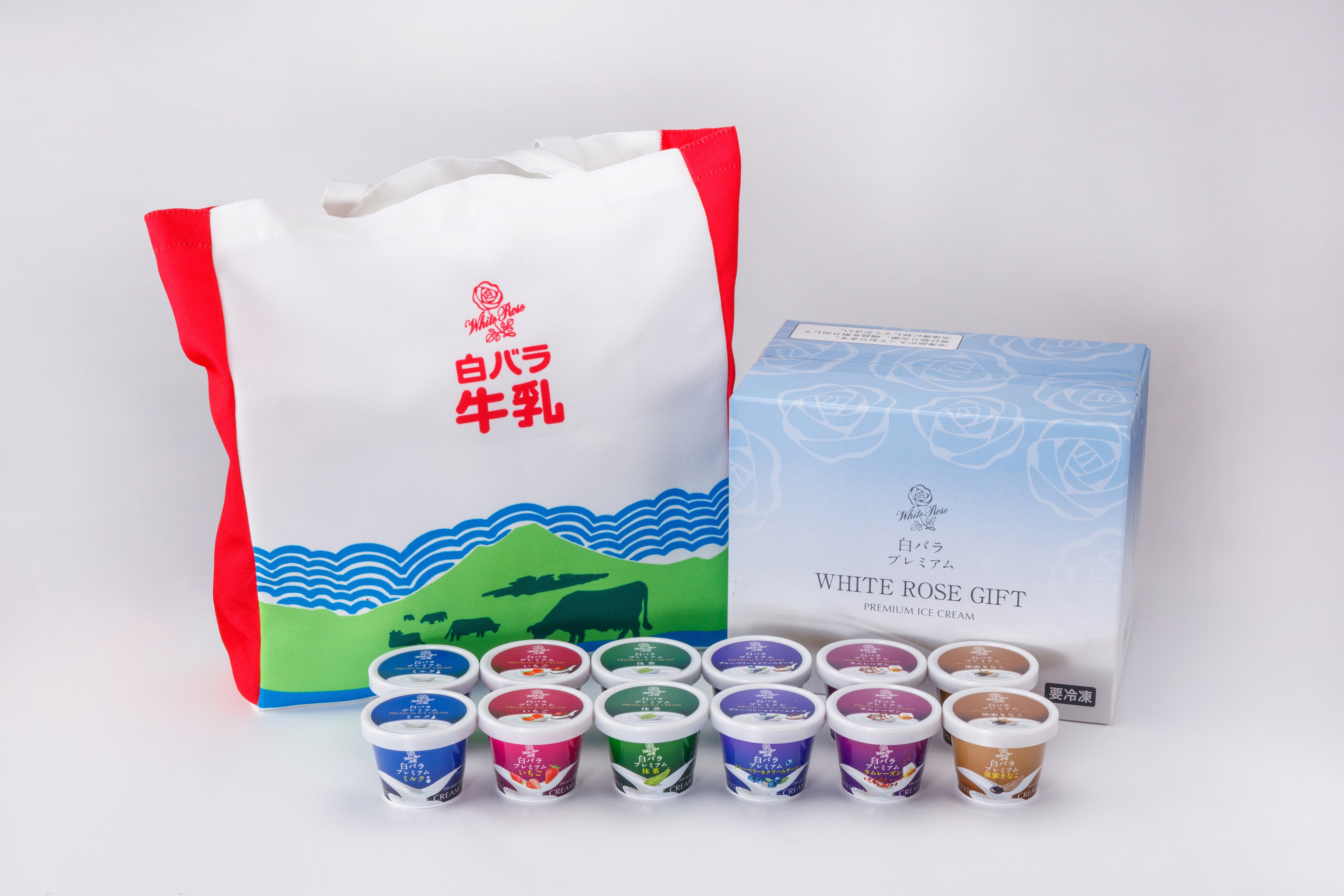 白バラ牛乳のデザインをそのままあしらったトートバッグ。