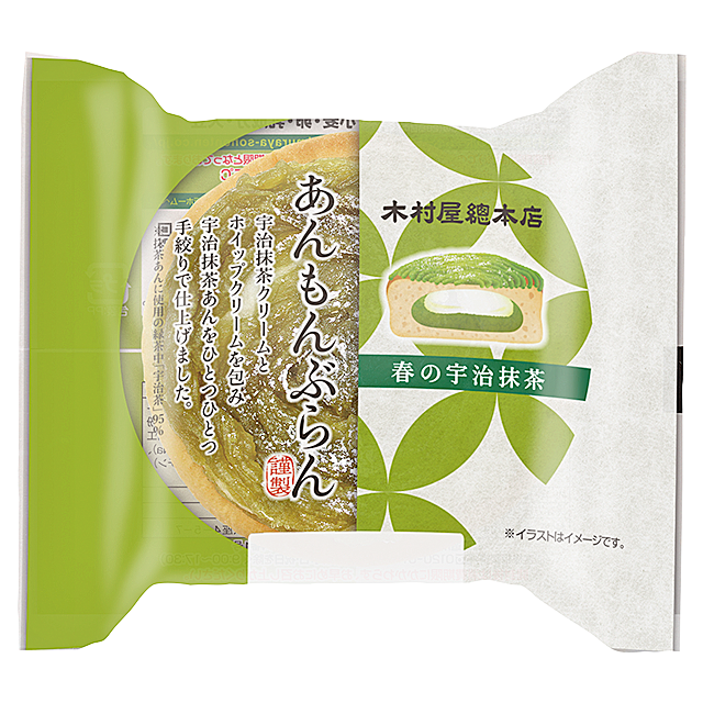 宇治抹茶クリームとホイップクリームを包んだ生地に、宇治抹茶あんをぐるぐるとモンブラン風にトッピングしました。春にぴったりな『宇治抹茶』を見た目と味わいで楽しめます。