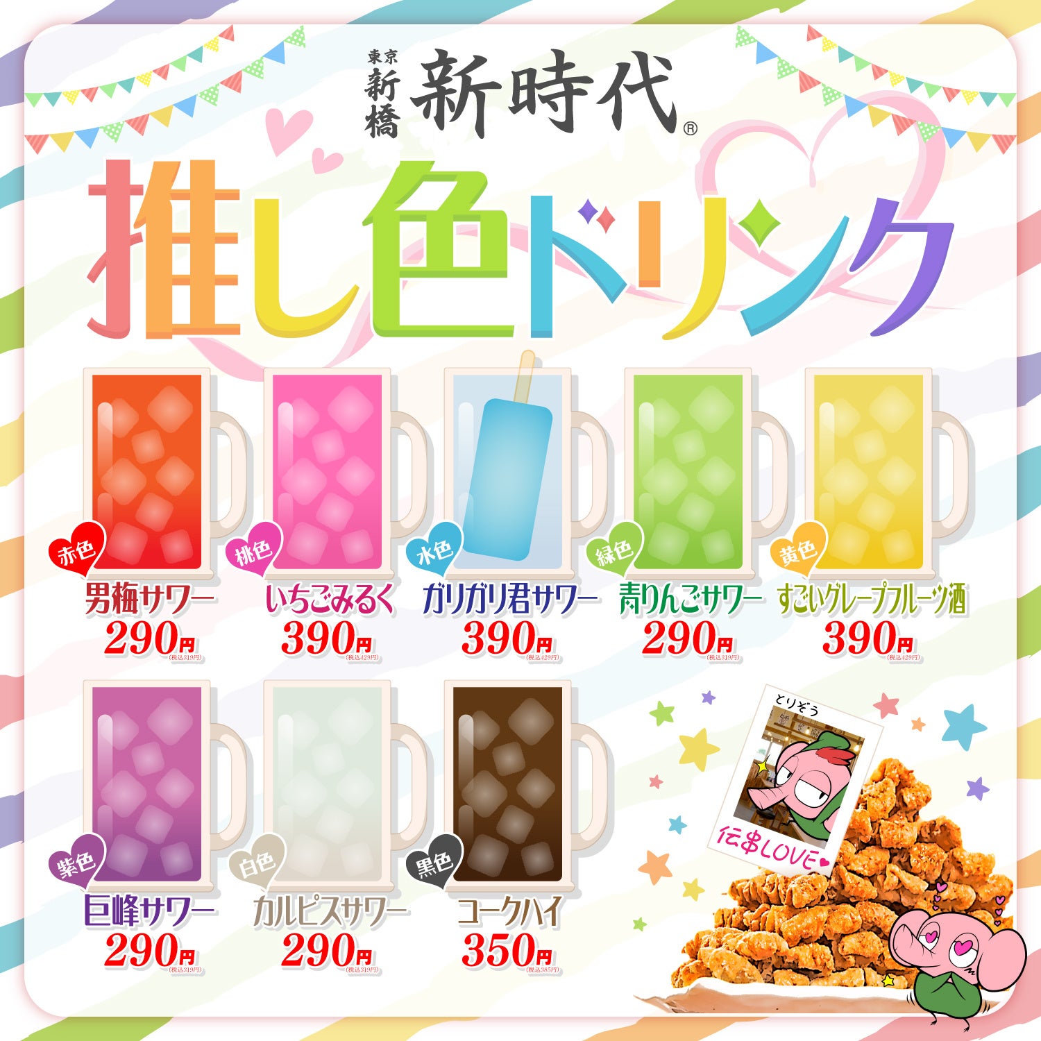 全国100店舗、人気急増中の居酒屋『新時代』の商品開発は、創業者であり、社長の佐野が作成したメニュー表から開始します。そのメニュー表を基に、試作と試食と何回も繰り返し、磨き込みます。会社の武器は、トップ自らが作るという方針のもと、連日、商品開発が行われます。この連日の進化こそが新時代の強み。月に何度もご利用頂けるお店となっております。値上げラッシュが続く、このご時世においても価格を維持、生ビール190円・ハイボール150円です。そこに、下記のドリンクの人気が近年、急増しております。いわゆる『推し消費』です。秋葉原を中心に広まった推し活が、全国に波及しました。今では、毎日SNSで投稿頂くようになりました。
