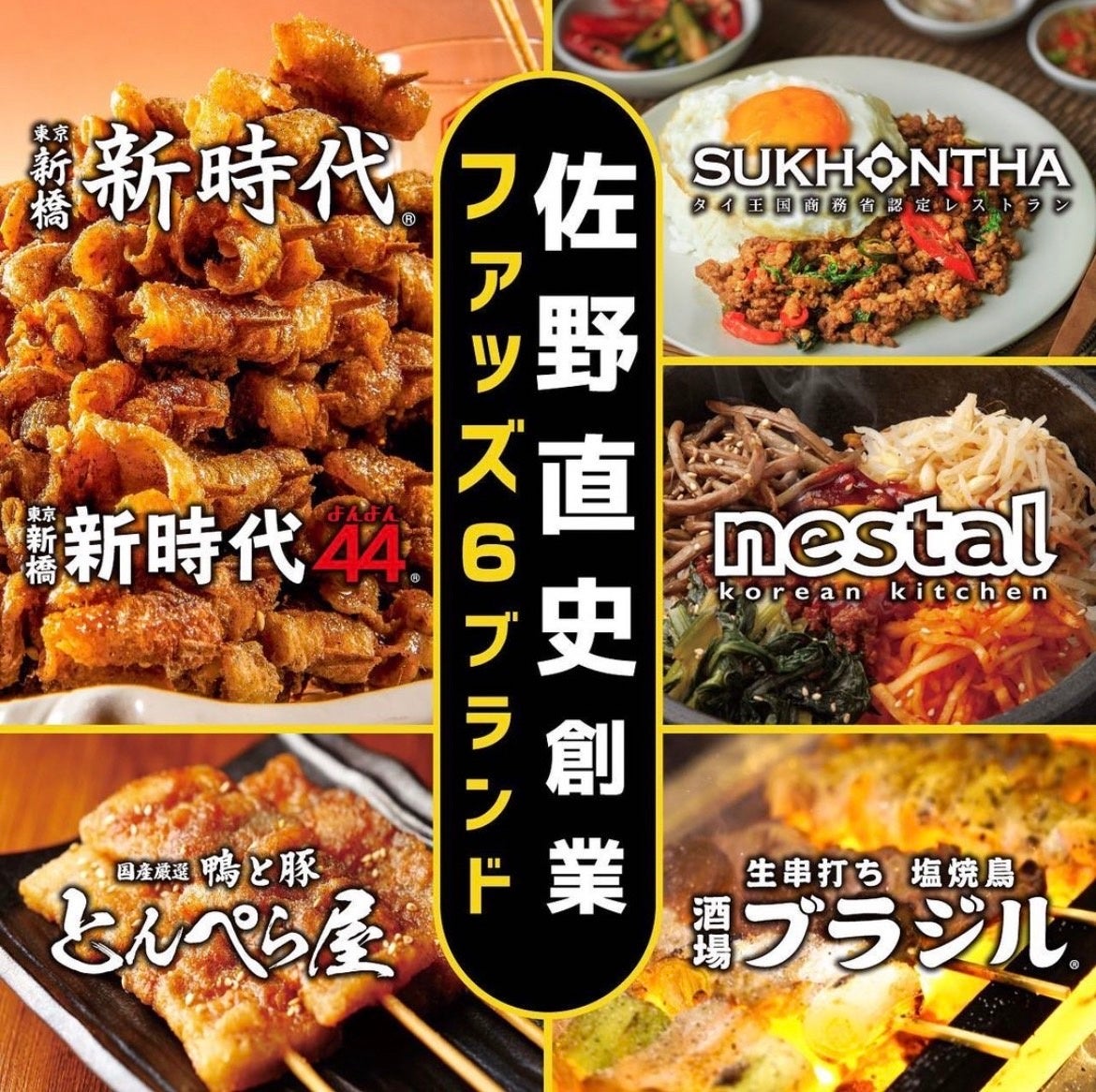 2006年設立、 「新時代」、「新時代44」、「鴨と豚料理とんぺら屋」、「生串打ち塩焼鳥 酒場ブラジル」、「タイ王国政府認定レストラン スコンター」、「韓国料理ネスタル」の計6ブランドの飲食店を愛知県・首都圏を中心に全国に120店舗を展開しています。(2023年1月現在)