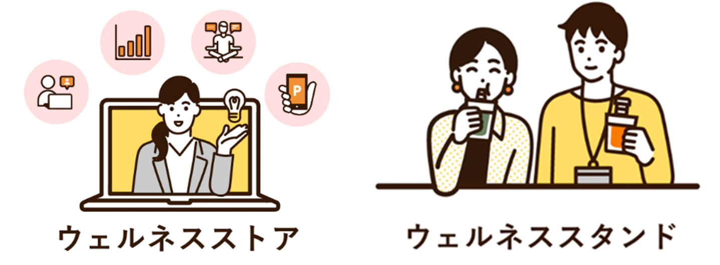 動画・eラーニング・サーベイなどの多彩な機能と分析支援で、施策立案から効果検証が可能な「ウェルネスストア」と、従業員の健康的な食習慣をサポートする、飲料や食品の置き型サービスの「ウェルネススタンド」の2プランを展開し、企業の課題に合わせて、最適なソリューションを提案しています。「ウェルネスストア」は、企業からの多数の要望を反映させ、2022年12月に大幅にコンテンツ内容を刷新しました。今後もお客様のニーズに対応するためコンテンツの充実に取り組み、企業の健康経営のサポートを行っていきます。
