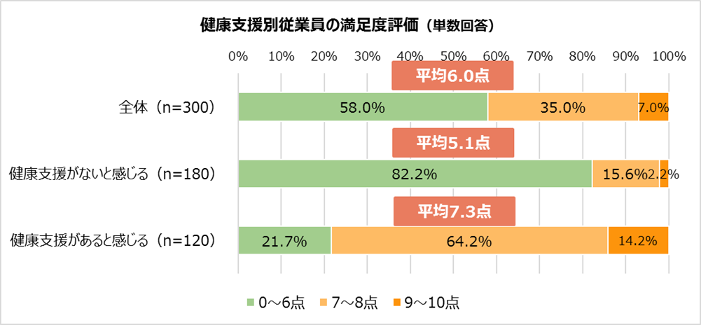 ※「健康支援の取り組み」は、0~6点を「健康支援がないと感じる」、7~10点を「健康支援があると感じる」として集計