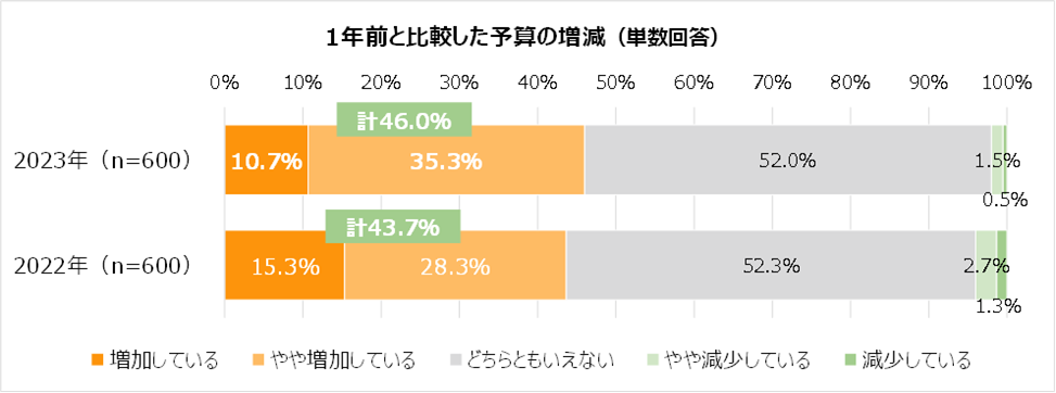 ・健康支援に関する予算が前年より増加した企業は46.0%と、前年より2.3%増加した。