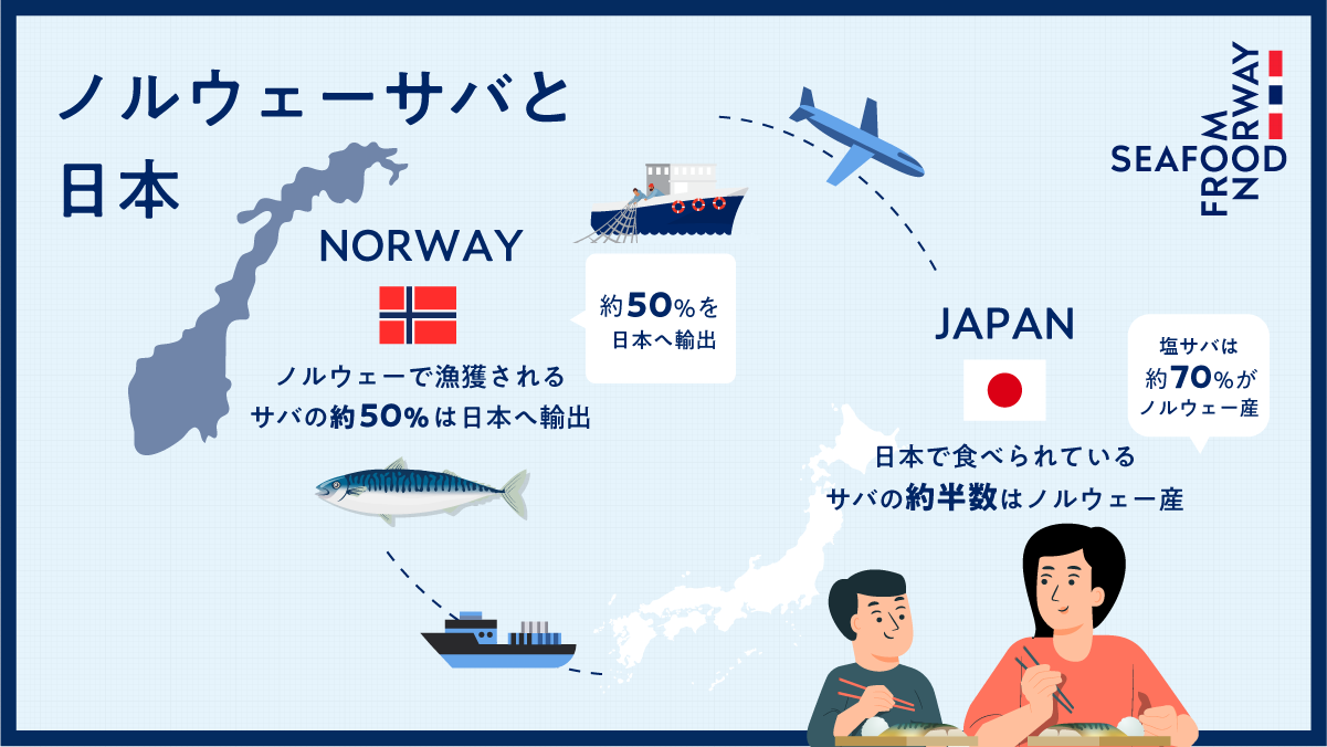 日本の食卓におなじみの「サバ」ですが、実は日本で販売されているサバの約半数、塩サバにおいては約7割がノルウェー産のタイセイヨウサバです。またノルウェーで漁獲されるサバの約50%が日本に届けられているほど、ノルウェーサバは日本で重宝されている食材です。