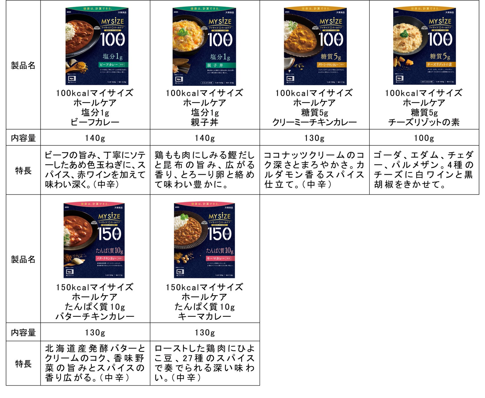『マイサイズ』は、「食事にもサイズがあっていい」というコンセプトのもと開発した、100kcalのレトルト食品を中心としたシリーズです。分かりやすいカロリー表示と幅広いメニューで食事管理に活用しやすく、2010年の発売以来、多くの方にご支持をいただいています。