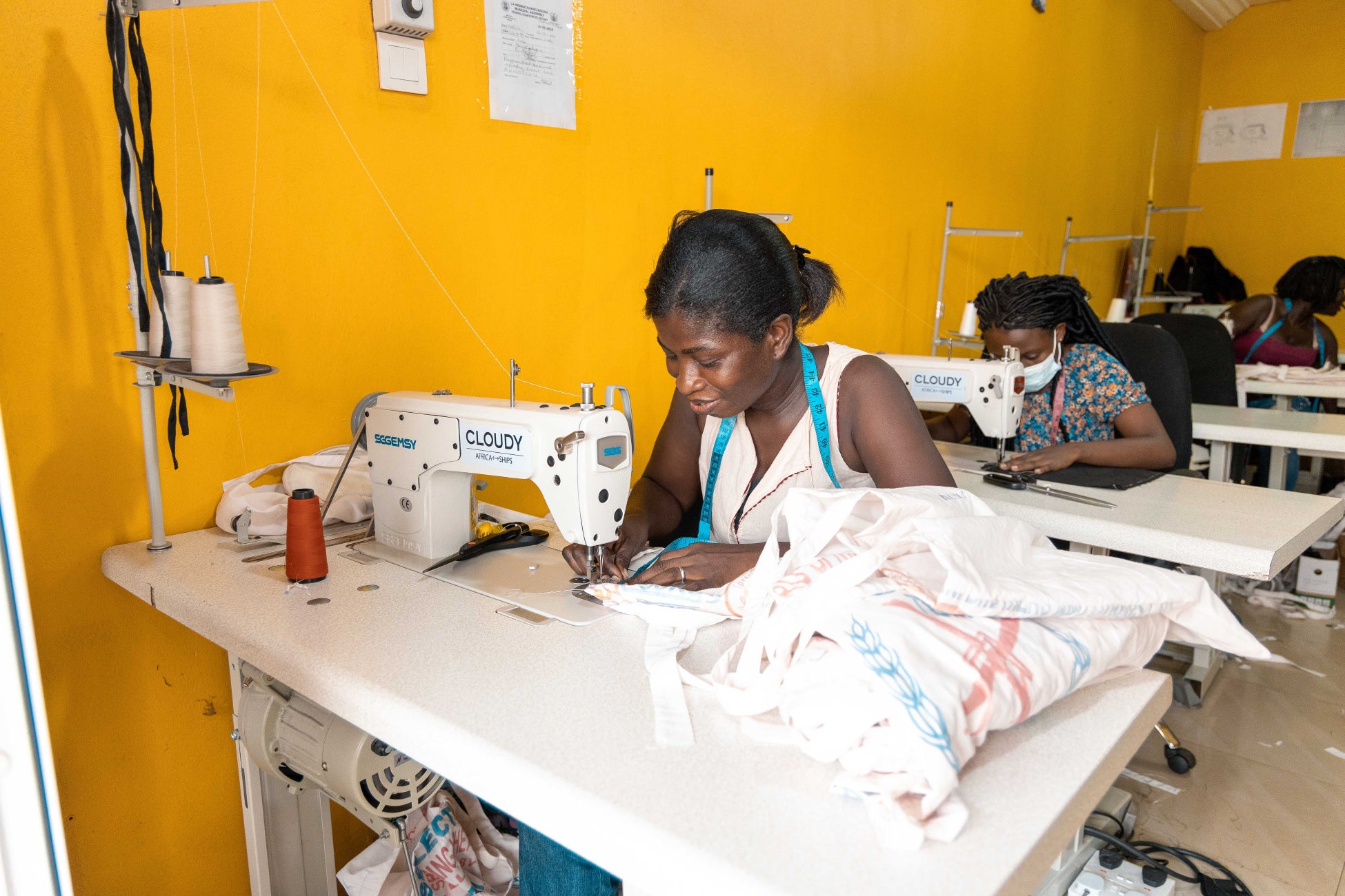 *エコバックは現地で使われた小麦粉の袋をアップサイクルして活用しています