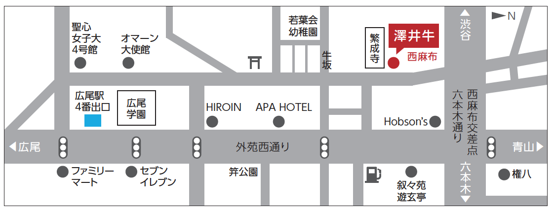 東京メトロ日比谷線「広尾」駅4番出口より 徒歩8分 ※駐車場のご用意はございません