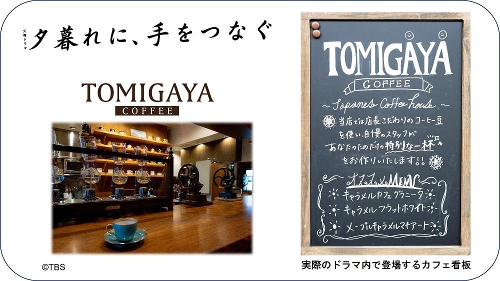 タリーズコーヒーでは、毎週火曜夜10時より放送中のTBSドラマ『夕暮れに、手をつなぐ』に登場するカフェ『TOMIGAYA COFFEE』の看板メニューである「メープルキャラメルマキアート」を、ドラマとのタイアップ商品として、1月27日(金)~2月5日(日)の期間限定にて販売しました。ドラマファンやタリーズファン等幅広いお客様からご好評いただき、今回第2弾として、3月10日(金)~3月19日(日)の期間限定で、もう一つの看板メニューである「キャラメルカフェグラニータ」を発売します。また大好評につき「メープルキャラメルマキアート」も再登場します。