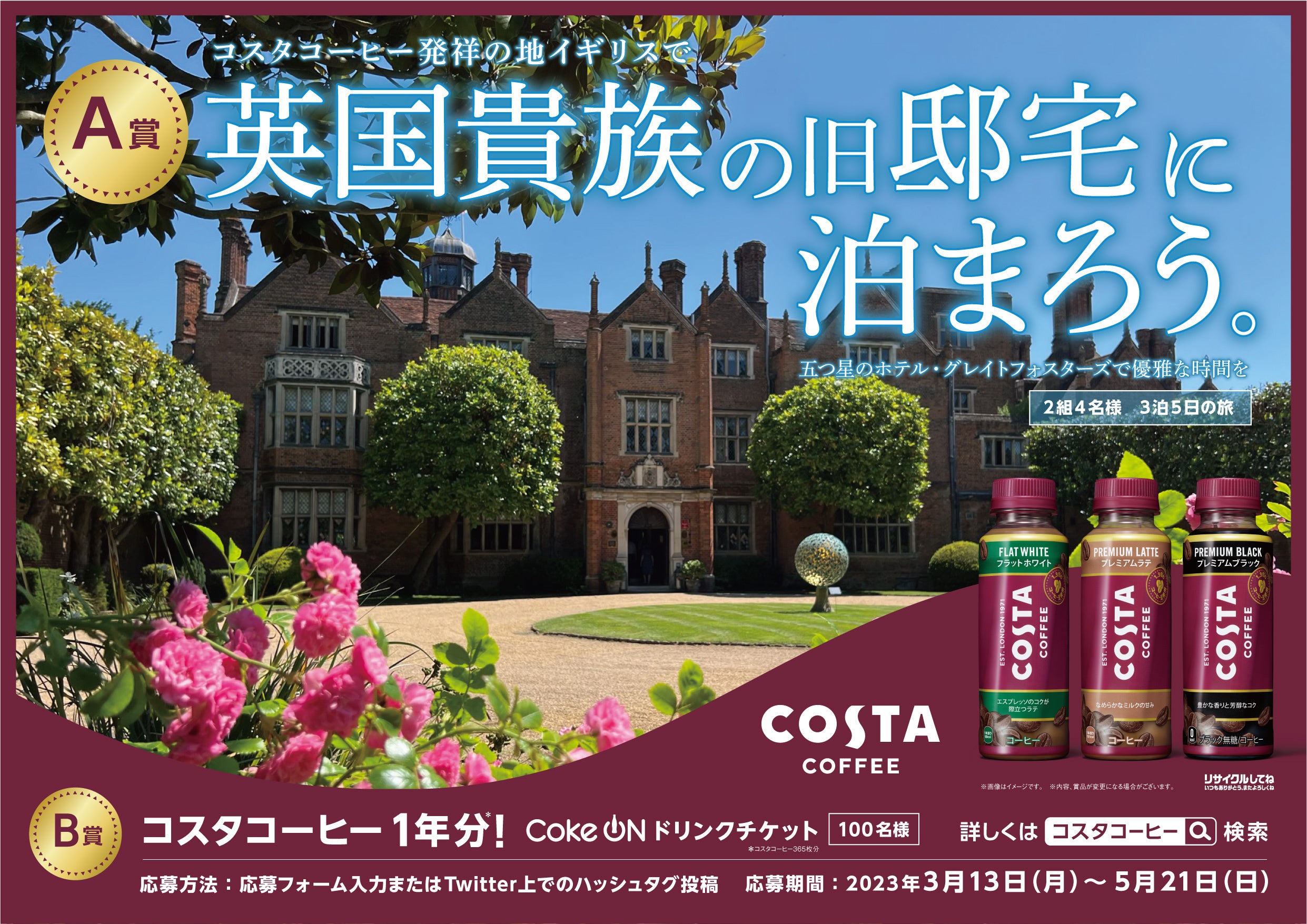 <「コスタコーヒー」発祥の地イギリスで英国貴族の旧邸宅に泊まろう。キャンペーン>