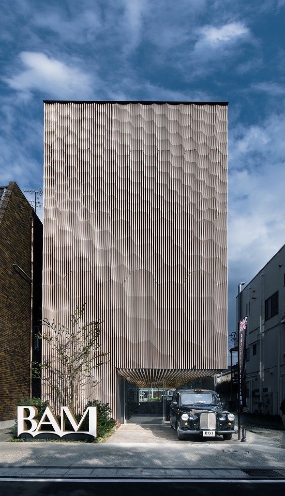 BAMは、鎌倉の鶴岡八幡宮から徒歩1分の参道沿いにあり、世界的建築家、隈研吾が手掛けた鎌倉彫モチーフのファサード(外装デザイン)が鎌倉の伝統と英国を結びます。