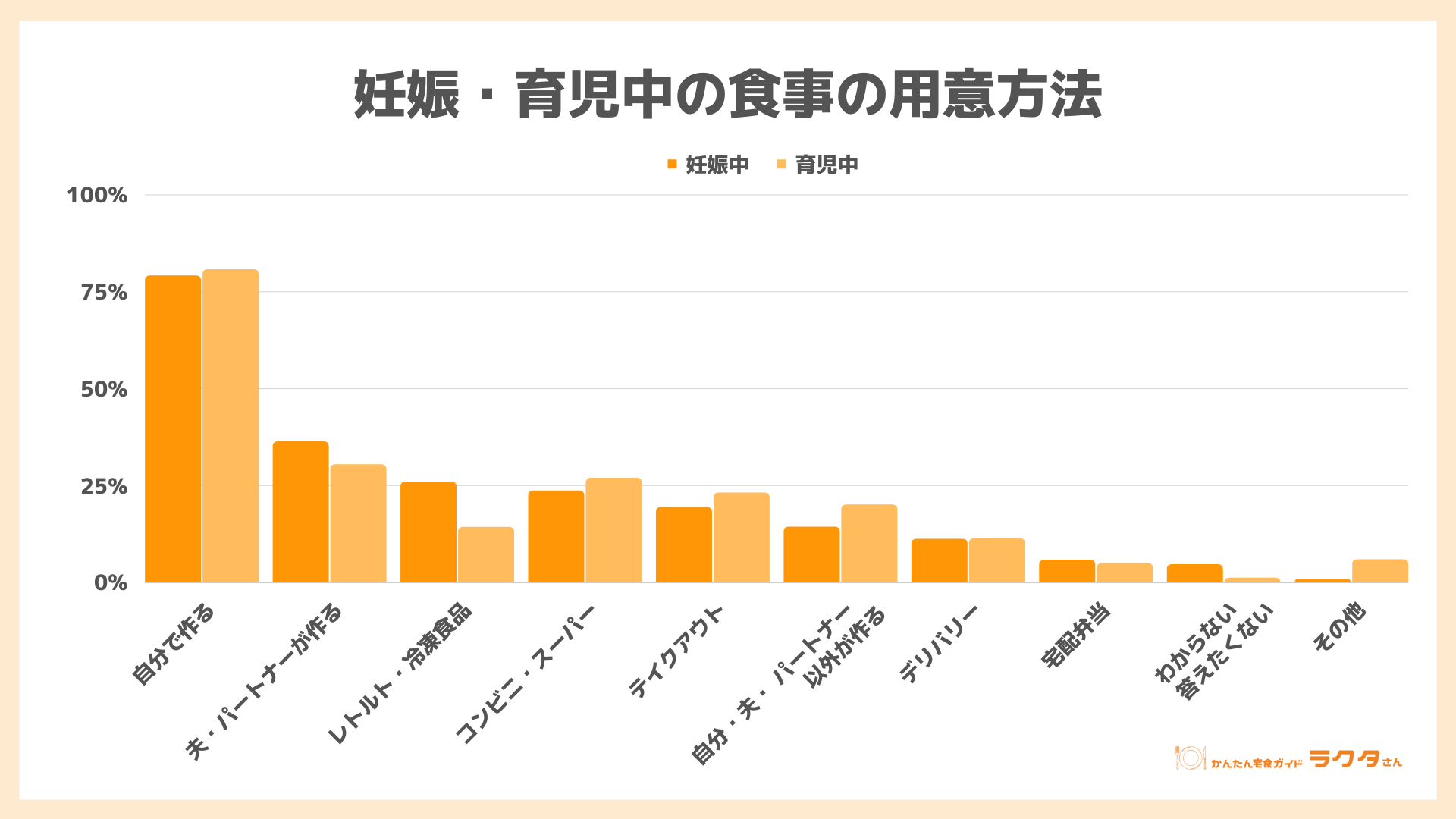 - 妊娠・育児中の食事の用意は「自分で作る」が最多。