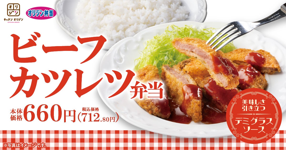 弁当・惣菜専門店「キッチンオリジン」「オリジン弁当」を展開しているイオングループのオリジン東秀株式会社(本社:東京都調布市/代表:沢村 弘也)は、3月12日(日)10時より、「ビーフカツレツ弁当」を期間限定で販売いたします。