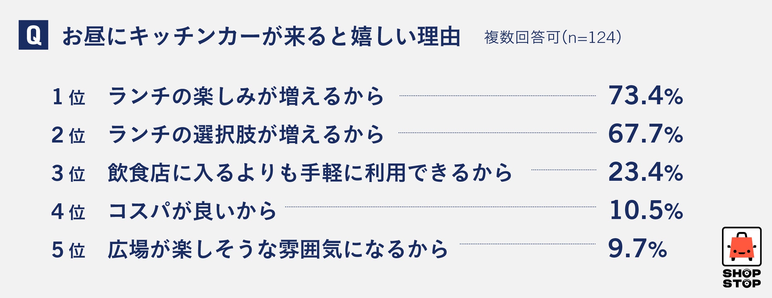 ・広場にキッチンカーが来ると嬉しい理由1位は「ランチの楽しみが増える」。