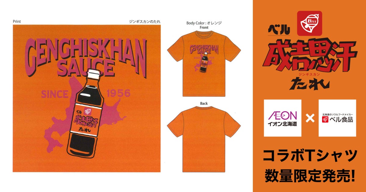 「成吉思汗たれ」「ラーメンスープ華味」「スープカレーの作り方」「ザンギ名人」など、北海道のソウルフードをご家庭で味わうためのたれ、つゆなどを製造販売する「北海道のソウルフードメイカー」ベル食品株式会社(本社:北海道札幌市西区、代表取締役社長:福山浩司、以下ベル食品)は、イオン北海道株式会社(本社:北海道札幌市白石区、代表取締役社長:青栁英樹、以下イオン北海道)とコラボし、ベル食品のロングセラー商品である「成吉思汗たれ」をデザインした「ご当地企業コラボTシャツ」を制作。イオン北海道は3月15日より道内35店舗にて数量限定にて順次販売を開始します。