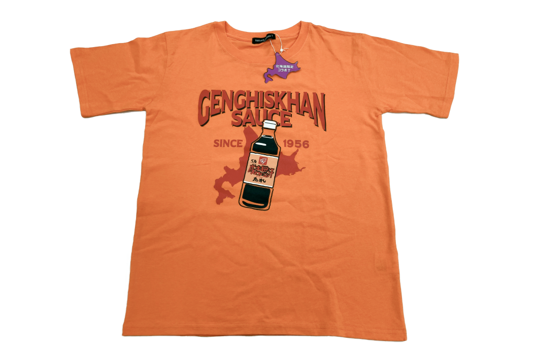 ベル食品の「成吉思汗たれTシャツ」は2017年の「ご当地企業コラボTシャツ」として一度販売されており、今回デザインを一新して2度目の登場となります。