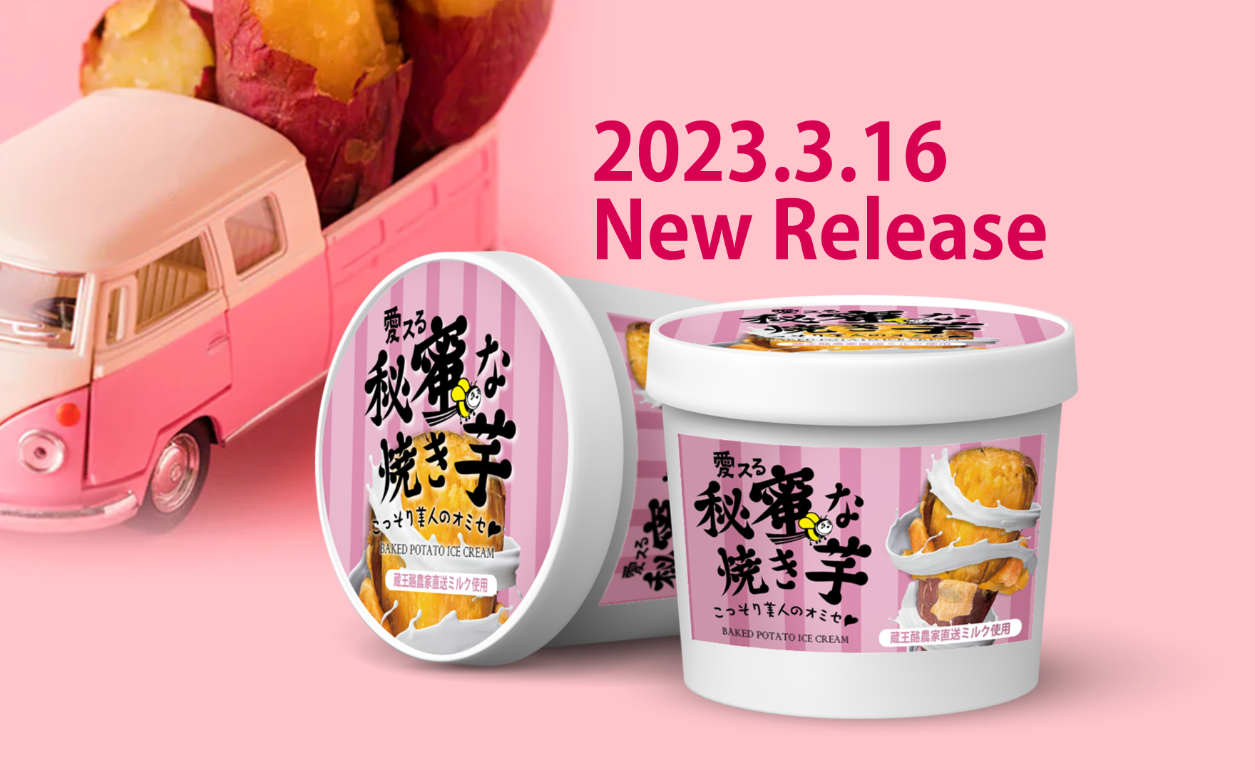 関東圏を中心に人気を博している「秘蜜な焼き芋」の特徴でもあるねっとりとした甘味と、焼き芋のロースト感を表現するために試行錯誤して完成した「愛スる秘蜜な焼き芋(焼き芋アイスクリーム)」。こだわりのミルクも蔵王の酪農家直送の新鮮なミルクを使用し、余分な物は添加せずに本格派アイスクリームに仕上げました。焼き芋の甘味を感じつつも、すっきりとした味わいのバランスは小さいなお子様からご年配まで楽しんで頂ける自信作となっております。