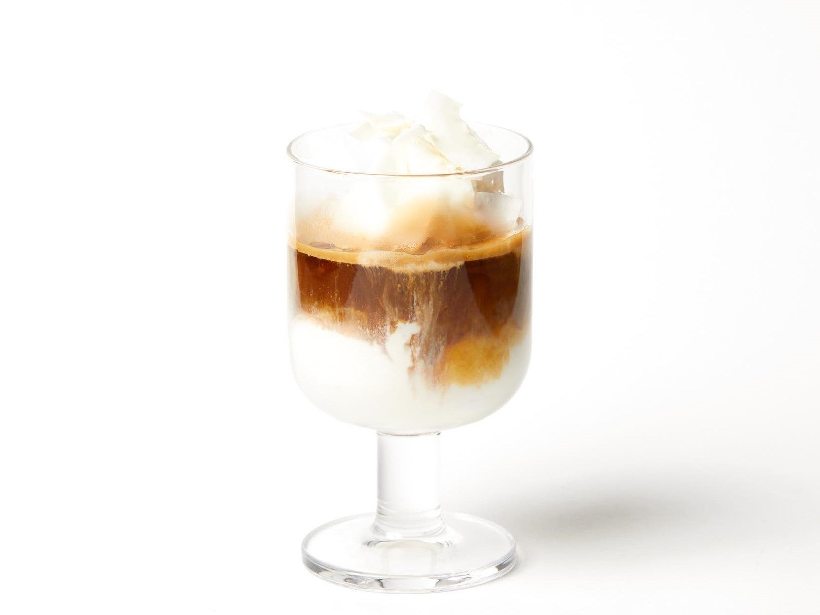 ココナッツフレーバーのミルクアイスにエスプレッソをイン。ココナッツチップの食感がアクセント。