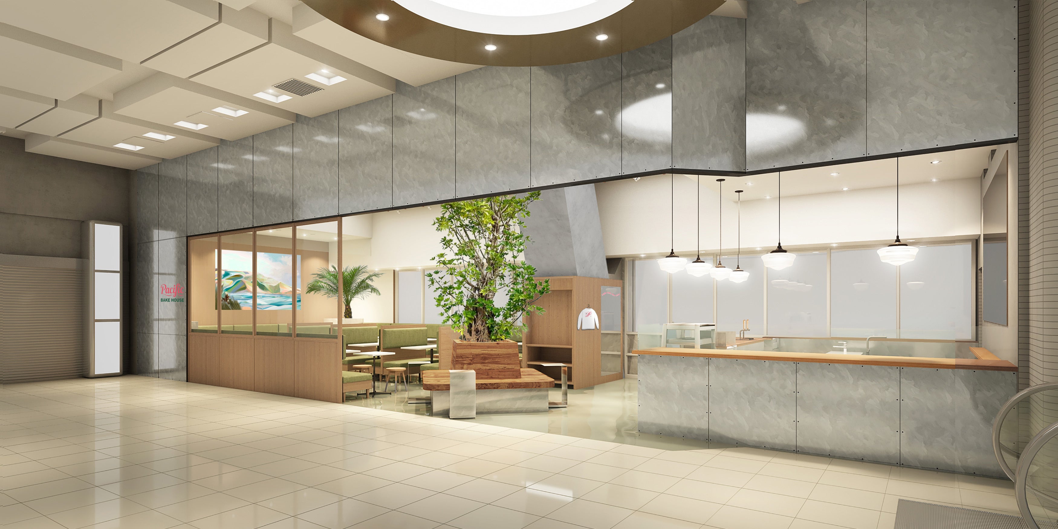 プロジェクトメンバーは七里ヶ浜〈Pacific DRIVE-IN〉から引き続き、インテリアデザインを野村訓市氏率いる『TRIPSTER』が担当。FACE氏による描き下ろしキャラクターと冨安修一氏(Sankofa)のロゴデザインは、お店を象徴するグラフィックデザインです。コーヒー監修は青山の人気コーヒーロースター〈Little Darling Coffee Roasters〉。〈Pacific BAKE HOUSE〉のために、特別にセレクトした豆を使用しています。さらにアパレルやグッズも取り揃え、ライフスタイルシーンを発信します。