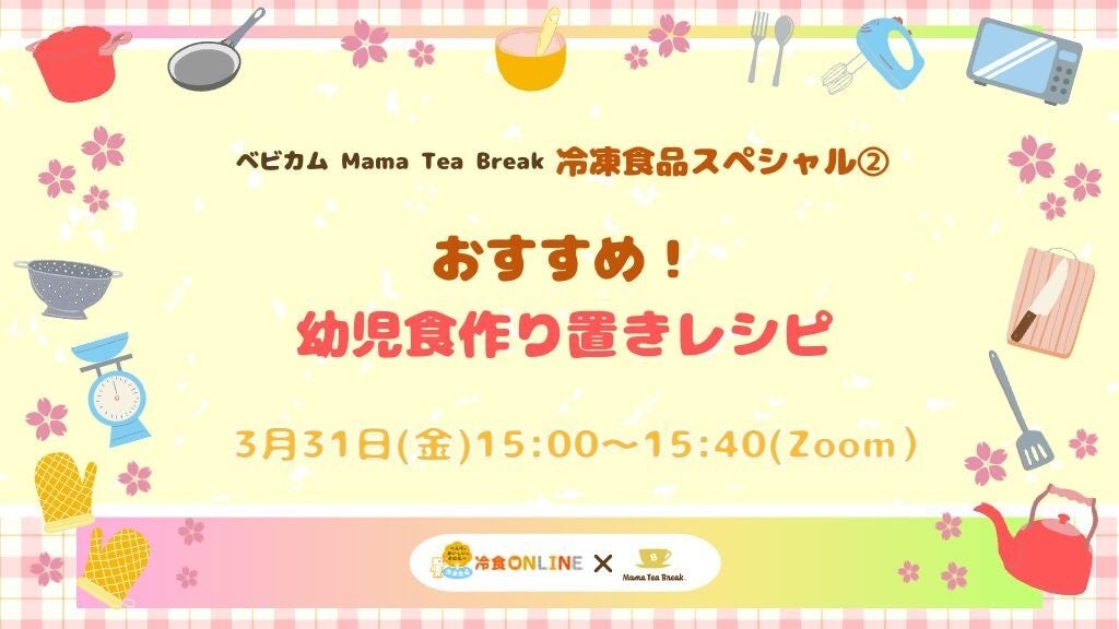 この番組は、ベビカムが定期的に開催しているママ(パパ)向けオンライン番組「ママティーブレイク」の特別版です。今回は、「冷食スペシャル② 〜おすすめ!幼児食作り置きレシピ〜」と題して、(一社)日本冷凍食品協会(https://www.reishokukyo.or.jp/)とコラボでお送りします。