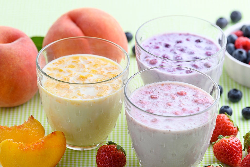- フルーツと牛乳が混じり合うシズル感のあるデザインに