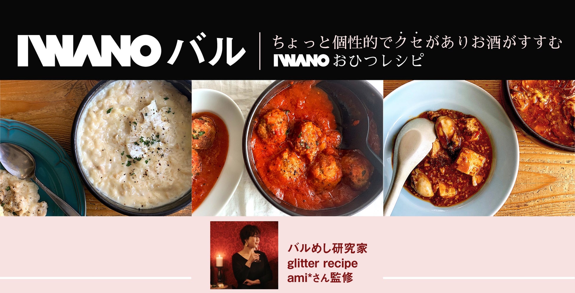 監修レシピはIWANO公式HP、SNSにてご紹介中です。レシピはすべて本格的ながら、工程はかんたんで実は手に入る食材ばかり。カリスマ性あふれるami *氏の「IWANOバル」レシピをお届けします。かんぱーい!