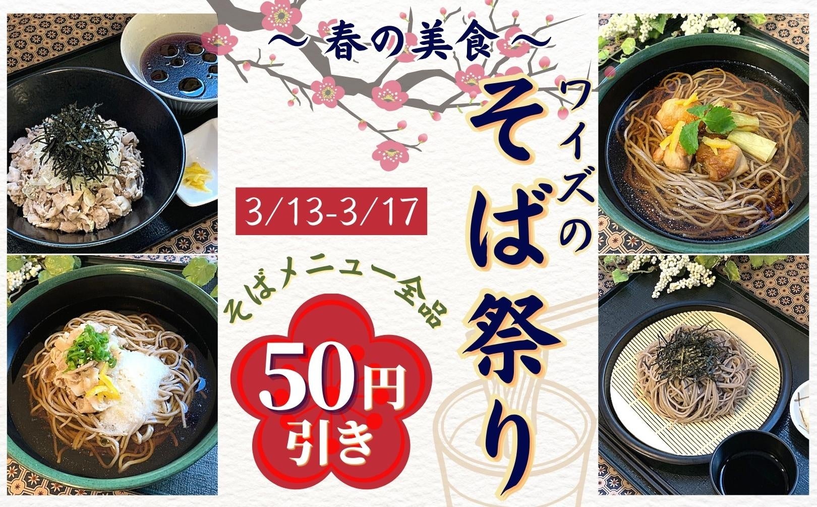 バラエティー豊かな『大人の学食』をご提供する『ワイズ 幕張テクノガーデン 店』 にて、2023年3月13日(月)~ 2023年3月17日(金)の期間限定にて、生(なま)そばメニューを全品50円引き!ワイズ『そば祭り』を開催いたします!