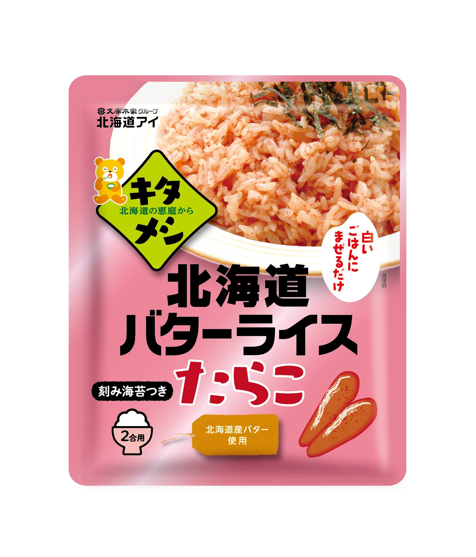 日本人の主食である“ごはん”を第1弾として、北海道の上質なバターを使用した洋風混ぜ込みご飯の素「北海道バターライス」を提案いたします。北海道産のとうもろこしを使用した「コーン」と、バターと相性抜群の「たらこ」の2種類が登場。炊き上がった2合分のご飯に混ぜるだけで、ご家庭では作ることが難しい、洋風だしのきいたごはんを手軽にお楽しみいただけます。