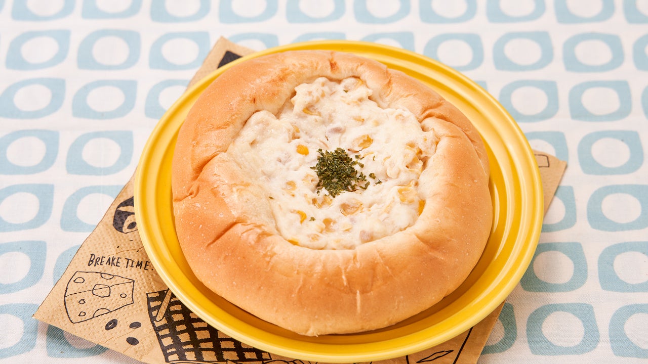 ふんわりとしたパンにツナとコーンマヨネーズをたっぷりと絞り焼き上げました。