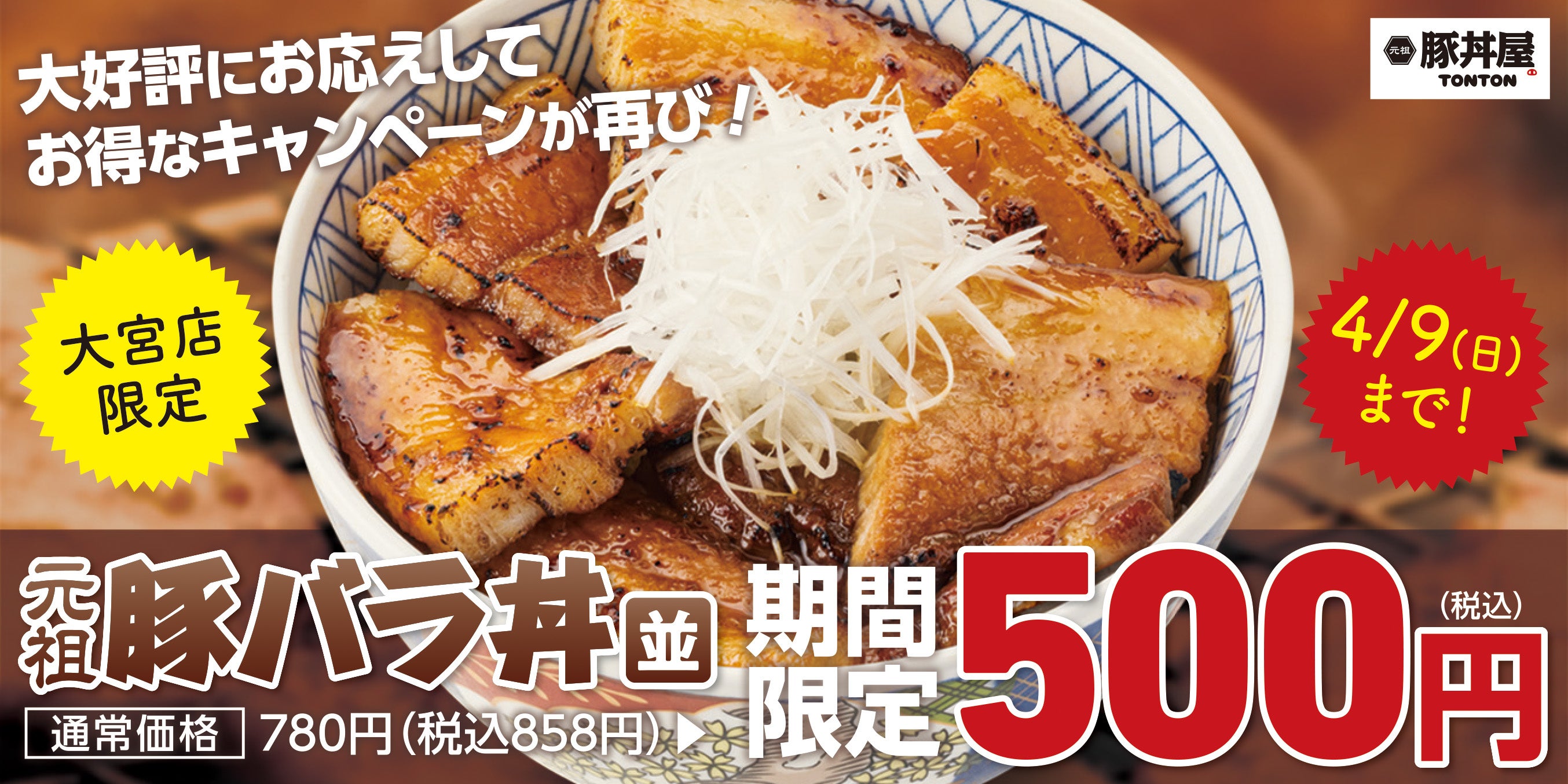 大宮店 期間限定「元祖豚バラ丼〈並〉500円」キャンペーン