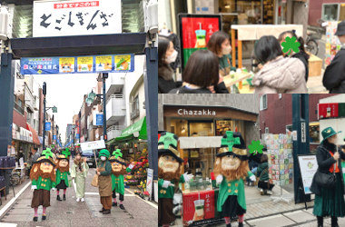 アイルランドの妖精・レプラコーンと一緒に戸越銀座をパレードします。15:30ごろ茶雑菓店頭より出発