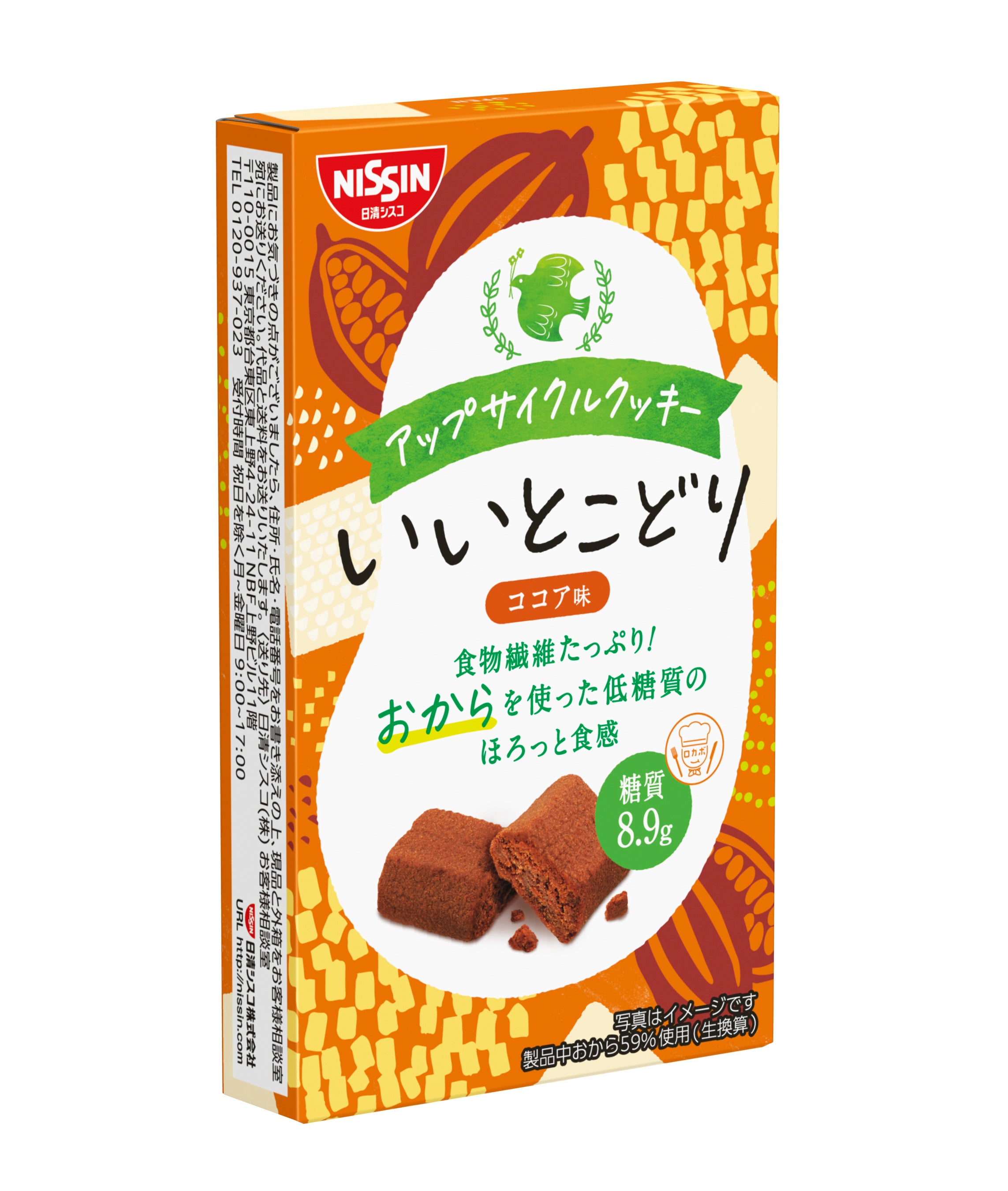 「アップサイクルクッキー いいとこどり ベイクドチーズ味」「アップサイクルクッキー いいとこどり ココア味」は、食物繊維が豊富に含まれる「おから」を生地に練りこみ、ほろっとした食感に焼き上げた一口サイズのクッキーです。糖質量は1食当たり9g未満を実現するとともに、普段の食事で不足しがちな食物繊維がたっぷり入っています。この「アップサイクルクッキー いいとこどり」をお召しあがりいただけば、年間3~6万トン*と言われる「おから」の廃棄量の削減につながります。