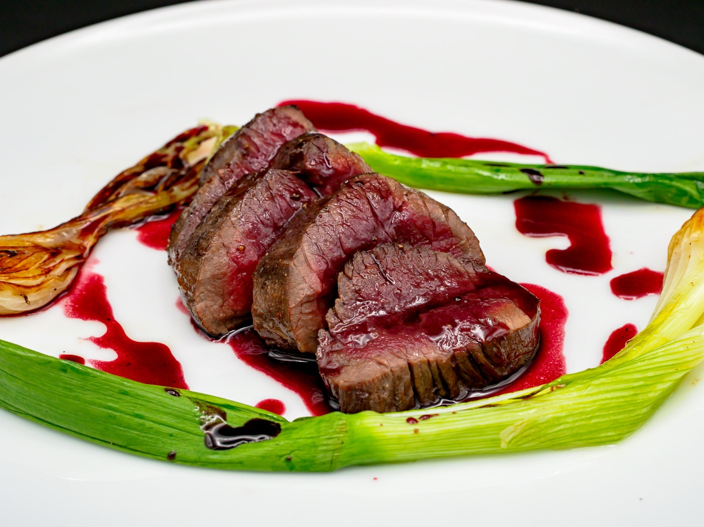 蝦夷鹿もも肉のロースト オニオンヌーボー添え