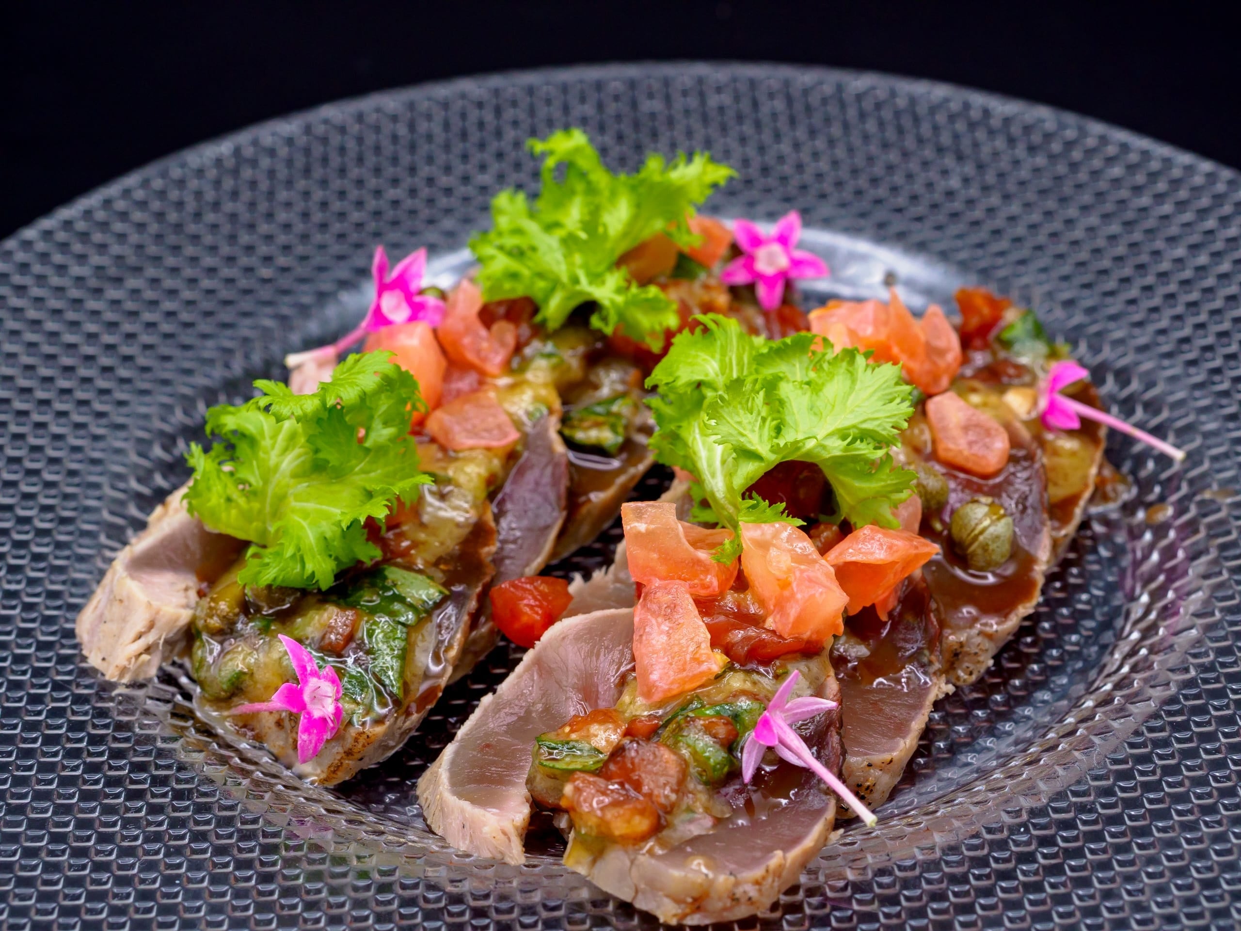 トマトとカツオの旨味の相乗効果で、余韻までお楽しみいただける前菜です。