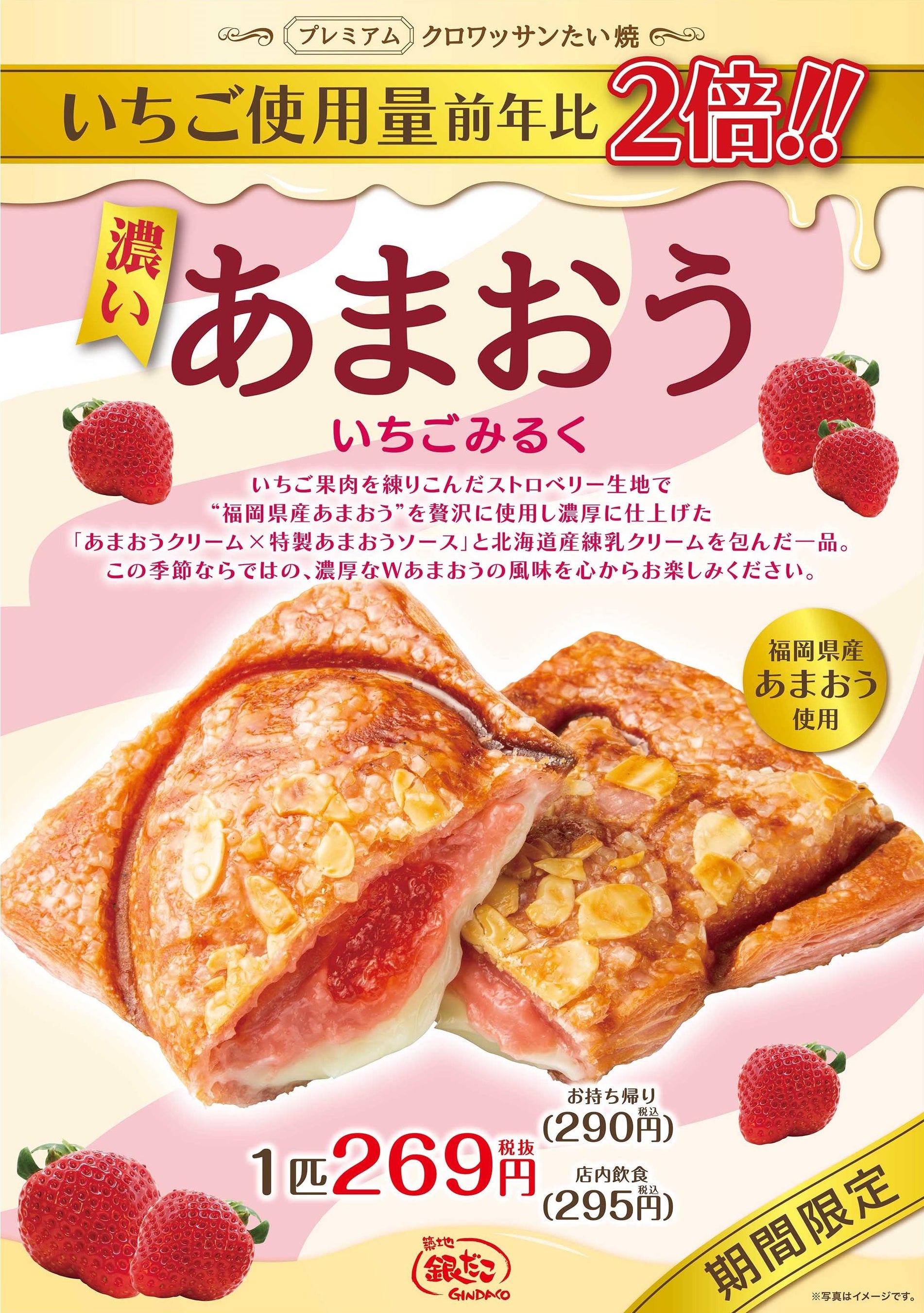 築地銀だこhttps://www.gindaco.com/を展開する株式会社ホットランド( 本社:東京都中央区、 代表取締役社長:佐瀬守男)は、2023年3月18日(土)より全国の築地銀だこ店舗(一部店舗を除く)にて、 クロワッサンたい焼 『濃い あまおう いちごみるく』を期間限定で発売いたします。