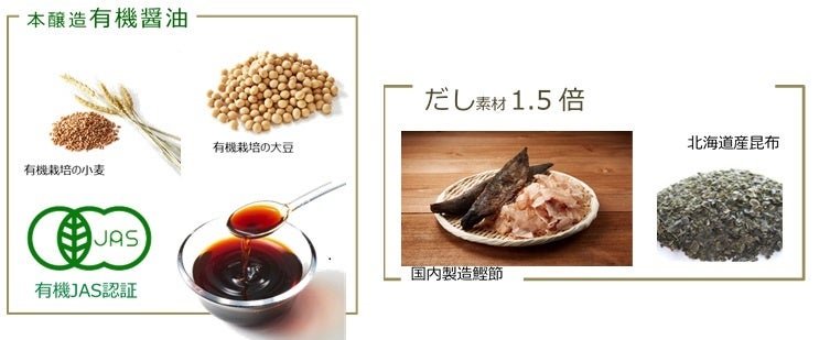 ・有機栽培の大豆と小麦で仕込んだ「本醸造有機醤油」を使用