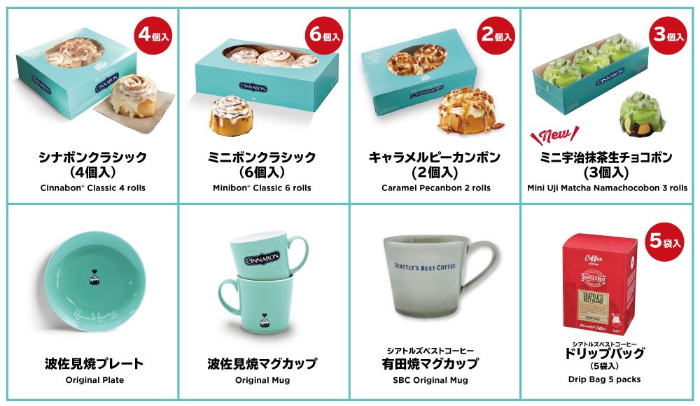 今回は、定番の「シナボンクラシック」「ミニボンクラシック」に加え、新商品「ミニ宇治抹茶生チョコボン」や、人気の「キャラメルピーカンボン(数量限定)」をご用意しております。