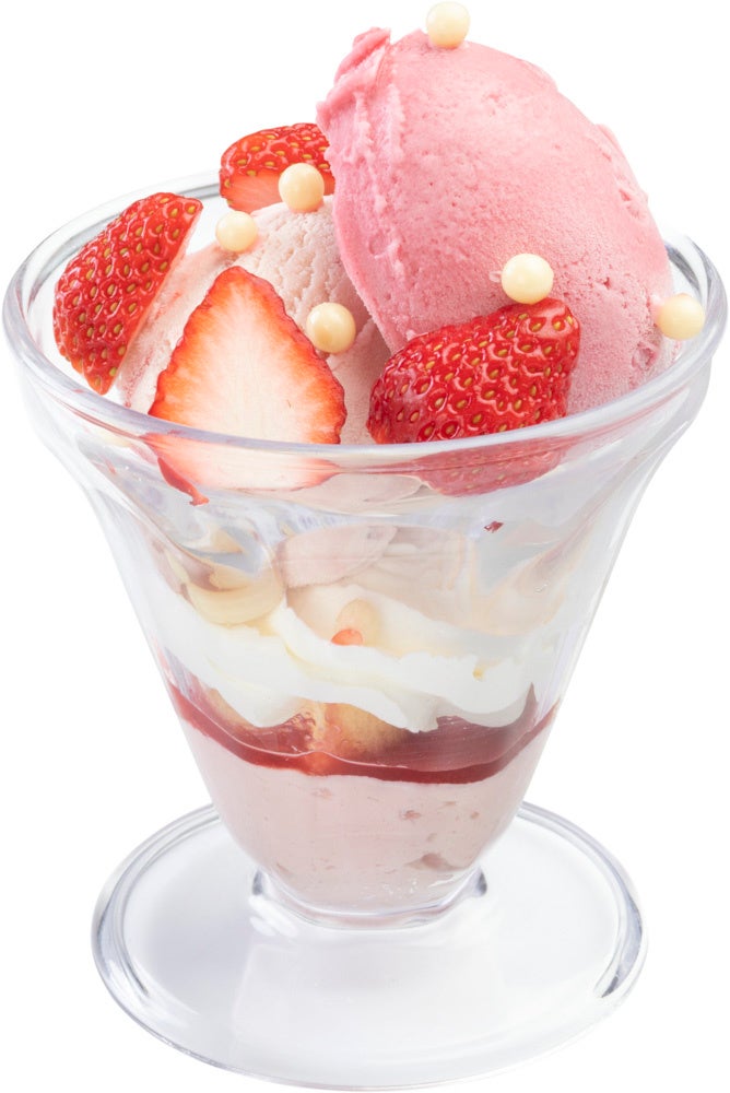 そして、「苺とベリーの春色パフェ」は、苺のムースとアイス、ソース、トッピングにフレッシュ苺を使い、さらに、酸味と香りにこだわったラズベリーピューレとカシス果汁を使ったシャーベットをのせました。苺の甘みと甘酸っぱいシャーベットのバランスが絶妙なパフェです。