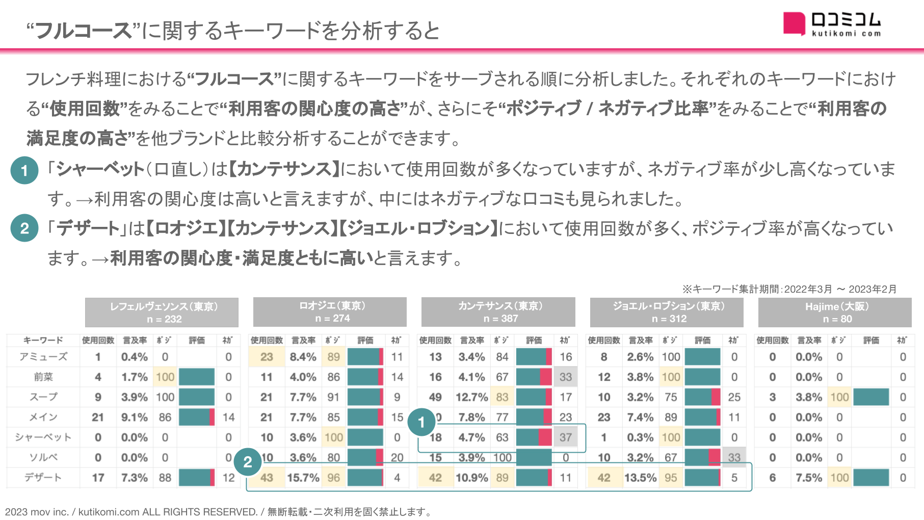 今回は3つ星獲得フレンチレストラン5ブランドを共通キーワードで比較分析しました。