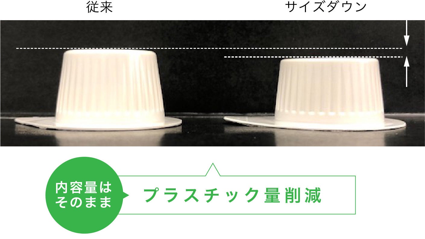 ポーションのサイズダウンによって、外装袋も小さくすることができ、その結果、輸送用の段ボールも小さくすることができます。段ボールが小さくなることで輸送効率もアップし、温室効果ガスの削減に繋がります。