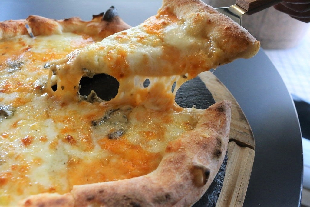 「このチーズを全部載せたピザはどんな味がするだろう?」 あるスタッフが好奇心で試作したところ、チー ズの旨味の塊のようなピザが完成しました。