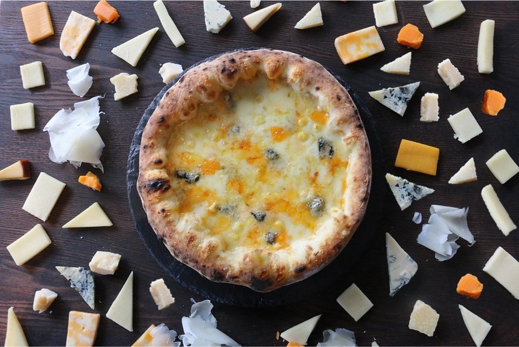 「このチーズを全部載せたピザはどんな味がするだろう?」 あるスタッフが好奇心で試作したところ、チー ズの旨味の塊のようなピザが完成しました。