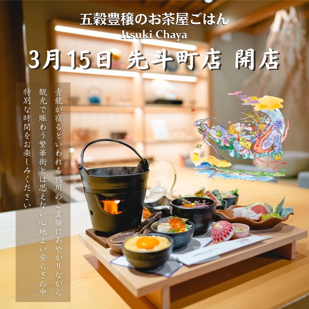 3月15日に京都の五木茶屋 五穀豊穣のお茶屋ごはん®が、3店舗となる先斗町店をオープンします。