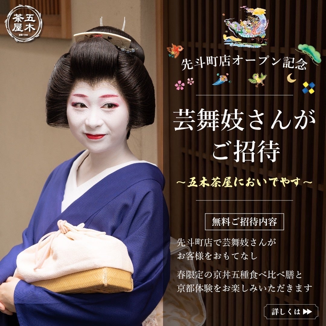 3月15日、京都の五木茶屋 五穀豊穣のお茶屋ごはん®が3店舗目となる先斗町店をオープンします。五木茶屋は、こだわりの京丼五種食べ比べ膳を楽しめる京都のお食事処です。です。公式Instagramのフォロワーは、2.7万人を越え、注目を浴びています。