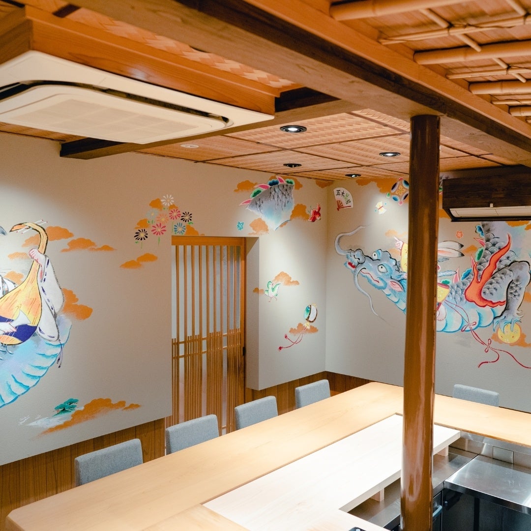 壁には、五木茶屋先斗町店のシンボルである青龍の絵が描かれています。
