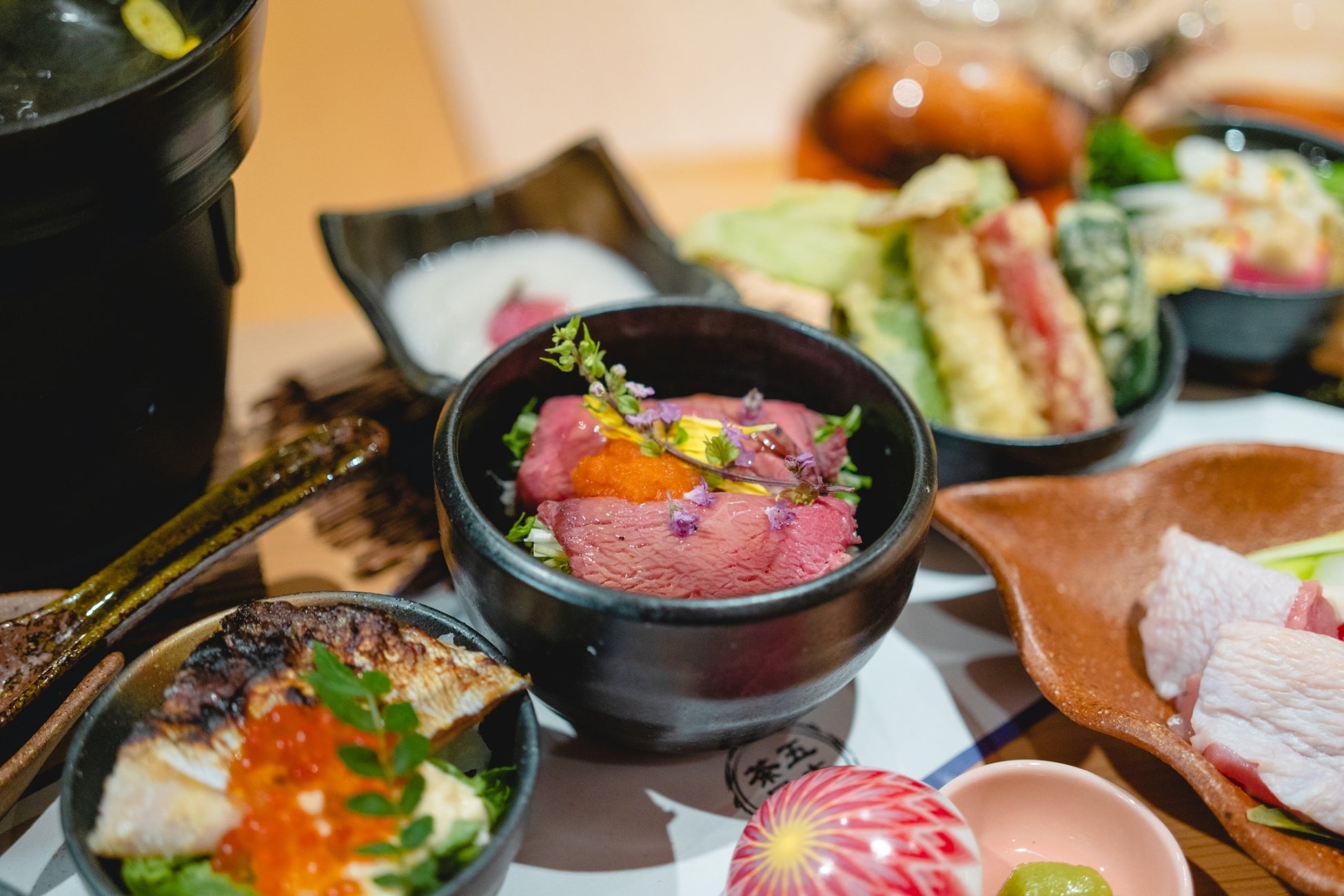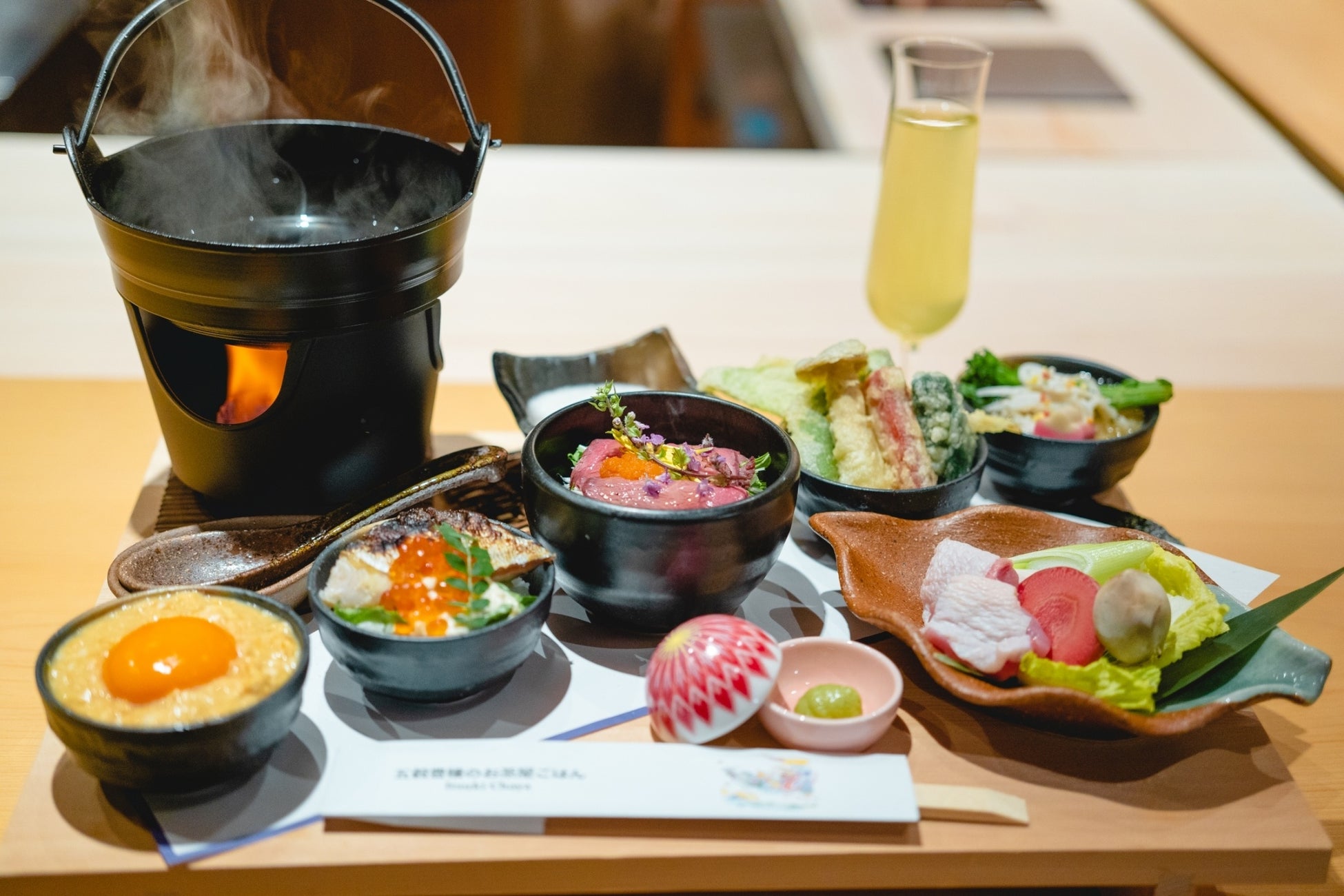 先斗町店では、春限定の京丼五種食べ比べ膳と五穀豊穣の玉手箱を提供します。